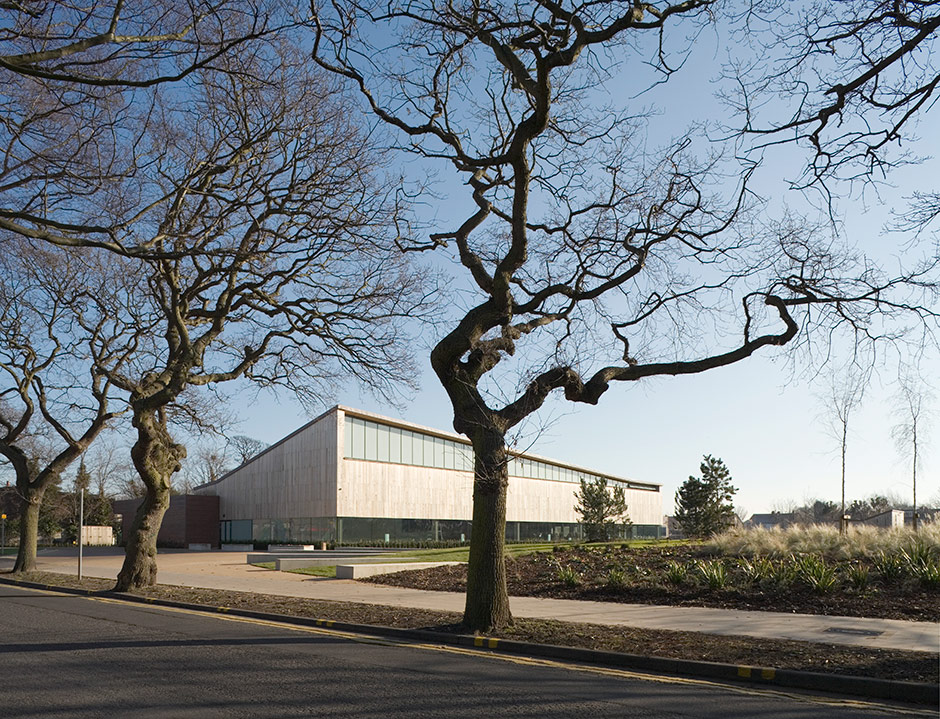 A new local authority swimming pool in the heart of Formby, Lancashire. This timber-framed, oak and copper clad swimming pool is sited in a new landscaped park providing a serene experience of swimming in nature; except on weekends when the pool is full of families enjoying the facilities together. The pool design utilises the view and an abundance of natural daylight along with low-energy environmental design.
